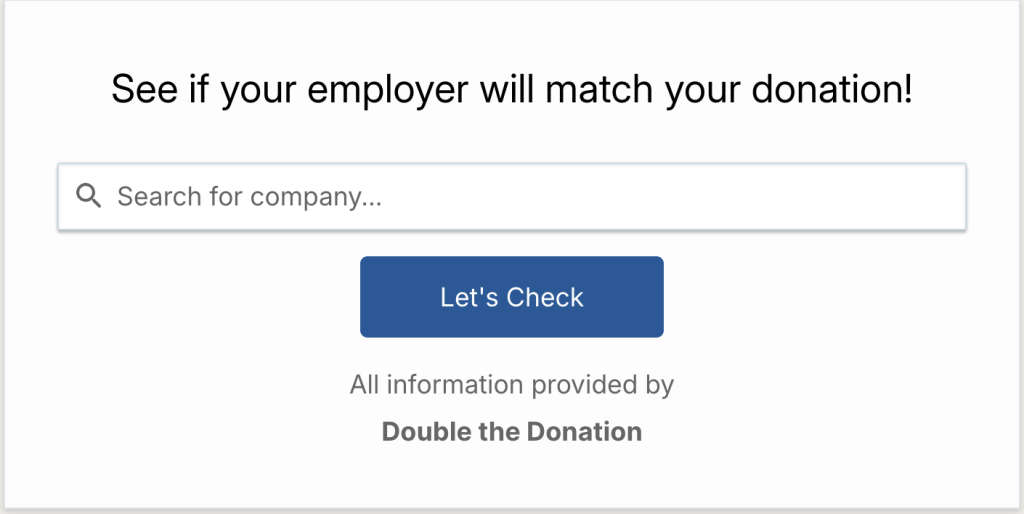 We partner with a company called Double the Donation. If you see anything that should be changed, please email Double the Donation’s team at data@doublethedonation.com.